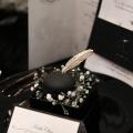 桌面上的杯光交錯疊盤上放置了分享與會賓客的幸福小物—黑色馬卡龍⋯